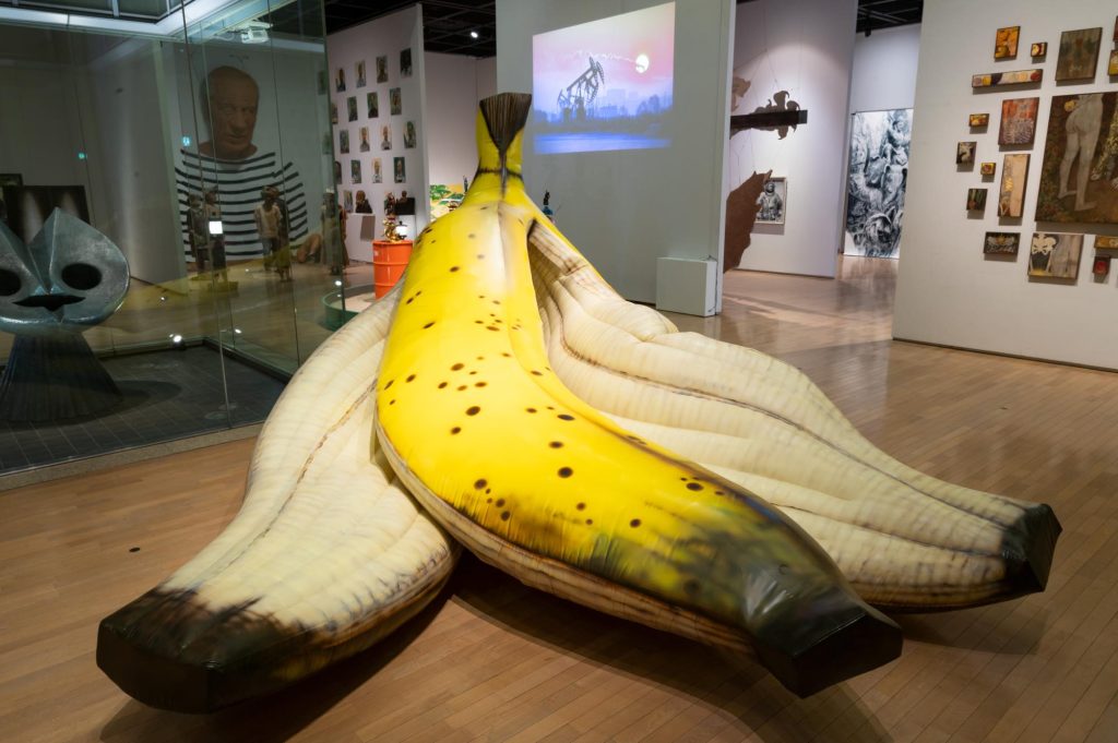 三塚新司による巨大なバナナの皮の作品「Slapstick」を展示いたします。
